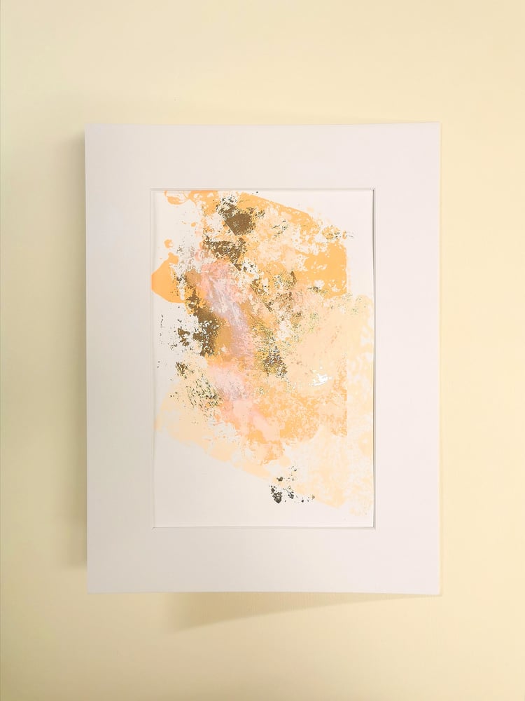 Kiinnitetty puhtaanvalkoiseen kehyskartonkiin (passepartout), joka istuu standardikokoiseen 30 x 40 cm kehykseen.